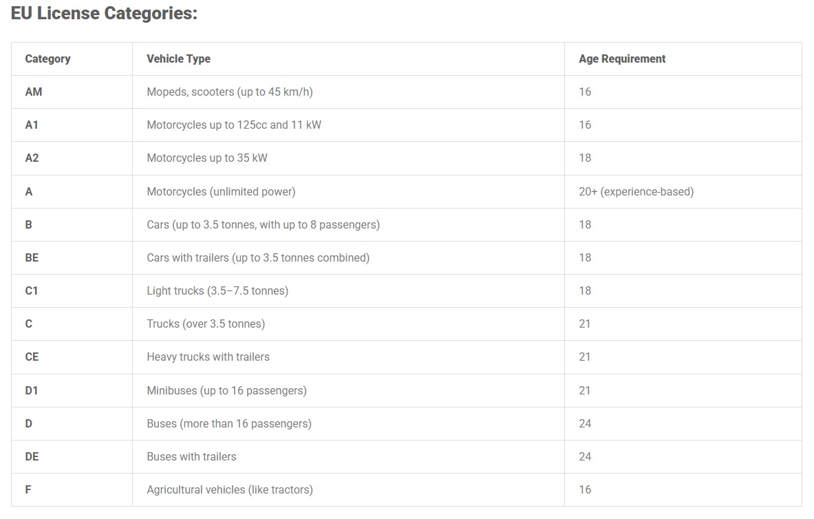 Drivers over 70: In many EU countries, drivers over a certain age (often 70) must renew their licenses more frequently, typically every 5 years.